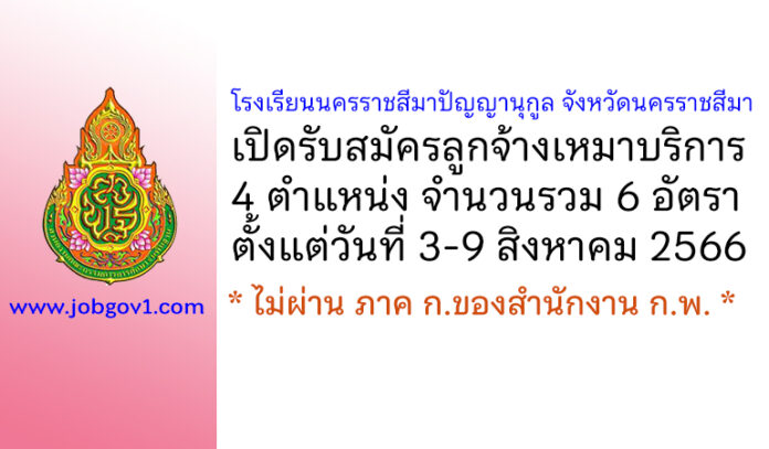 โรงเรียนนครราชสีมาปัญญานุกูล จังหวัดนครราชสีมา รับสมัครลูกจ้างเหมาบริการ 6 อัตรา ตั้งแต่วันที่ 3-9 สิงหาคม 2566