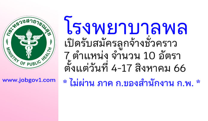 โรงพยาบาลพล รับสมัครลูกจ้างชั่วคราว 7 ตำแหน่ง 10 อัตรา ตั้งแต่วันที่ 4-17 สิงหาคม 2566