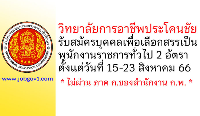 วิทยาลัยการอาชีพประโคนชัย รับสมัครบุคคลเพื่อเลือกสรรเป็นพนักงานราชการทั่วไป 2 อัตรา ตั้งแต่วันที่ 15-23 สิงหาคม 2566