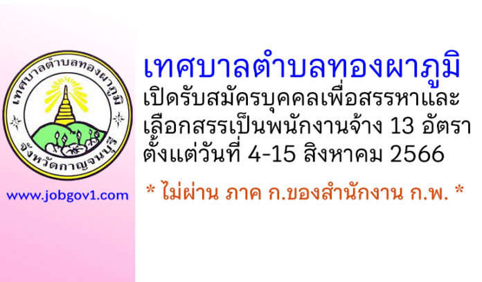 เทศบาลตำบลทองผาภูมิ รับสมัครบุคคลเพื่อสรรหาและเลือกสรรเป็นพนักงานจ้าง 13 อัตรา ตั้งแต่วันที่ 4-15 สิงหาคม 2566