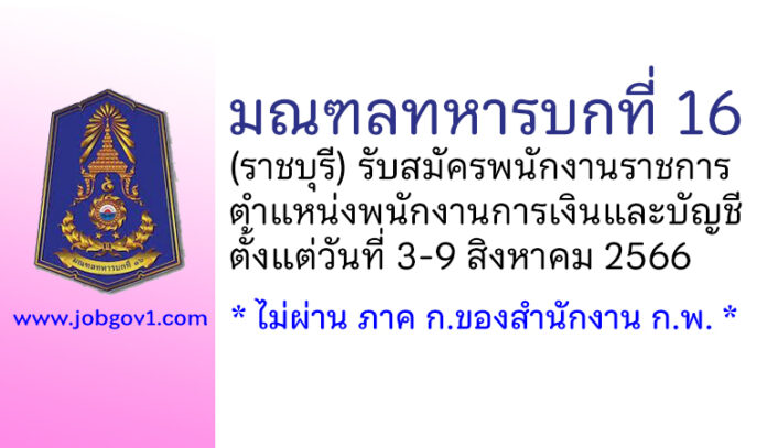 มณฑลทหารบกที่ 16 รับสมัครพนักงานราชการ ตำแหน่งพนักงานการเงินและบัญชี ตั้งแต่วันที่ 3-9 สิงหาคม 2566
