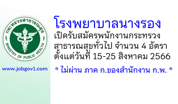 โรงพยาบาลนางรอง รับสมัครพนักงานกระทรวงสาธารณสุขทั่วไป 4 อัตรา ตั้งแต่วันที่ 15-25 สิงหาคม 2566