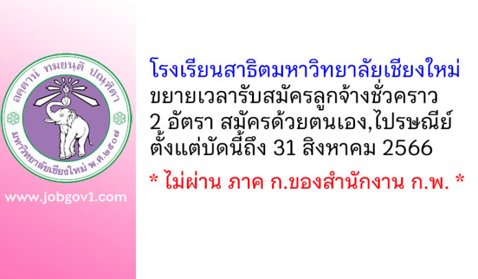 โรงเรียนสาธิตมหาวิทยาลัยเชียงใหม่ ขยายเวลารับสมัครลูกจ้างชั่วคราว 2 อัตรา ตั้งแต่บัดนี้ถึง 31 สิงหาคม 2566