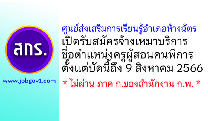 ศูนย์ส่งเสริมการเรียนรู้อำเภอห้างฉัตร รับสมัครจ้างเหมาบริการ ตำแหน่งครูผู้สอนคนพิการ ตั้งแต่บัดนี้ถึง 9 สิงหาคม 2566