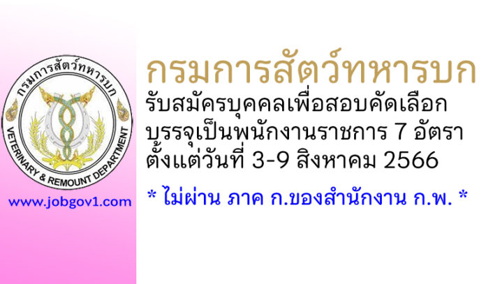 กรมการสัตว์ทหารบก รับสมัครบุคคลเพื่อสอบคัดเลือกบรรจุเป็นพนักงานราชการ 7 อัตรา ตั้งแต่วันที่ 3-9 สิงหาคม 2566