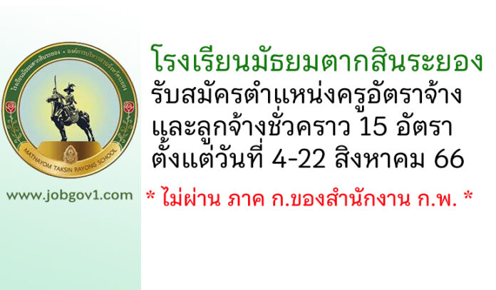 โรงเรียนมัธยมตากสินระยอง รับสมัครครูอัตราจ้าง และลูกจ้างชั่วคราว 15 อัตรา ตั้งแต่วันที่ 4-22 สิงหาคม 2566