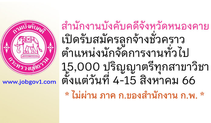 สำนักงานบังคับคดีจังหวัดหนองคาย รับสมัครลูกจ้างชั่วคราว ตำแหน่งนักจัดการงานทั่วไป ตั้งแต่วันที่ 4-15 สิงหาคม 2566