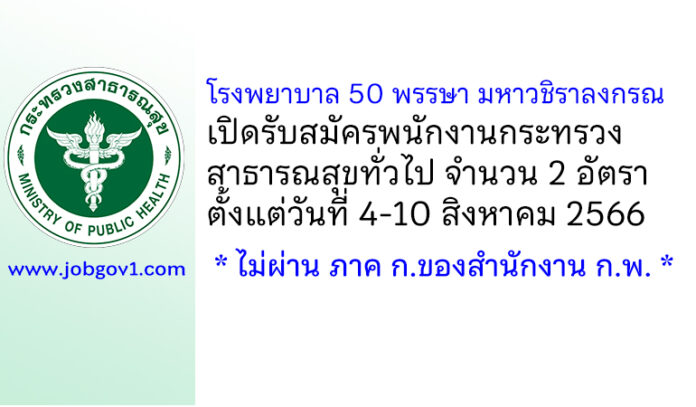 โรงพยาบาล 50 พรรษา มหาวชิราลงกรณ รับสมัครพนักงานกระทรวงสาธารณสุขทั่วไป 2 อัตรา ตั้งแต่วันที่ 4-10 สิงหาคม 2566