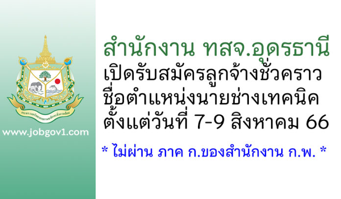 สำนักงาน ทสจ.อุดรธานี รับสมัครลูกจ้างชั่วคราว ตำแหน่งนายช่างเทคนิค ตั้งแต่วันที่ 7-9 สิงหาคม 2566