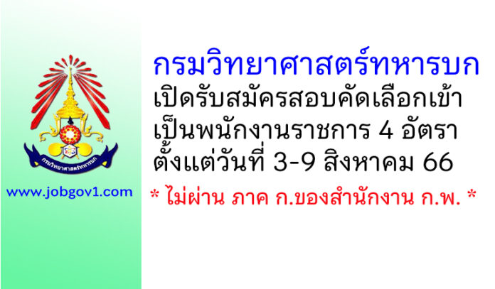 กรมวิทยาศาสตร์ทหารบก รับสมัครสอบคัดเลือกเข้าเป็นพนักงานราชการ 4 อัตรา ตั้งแต่วันที่ 3-9 สิงหาคม 2566