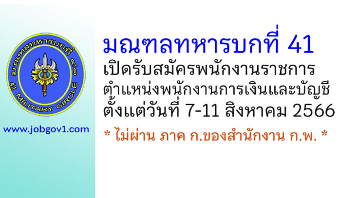 ตำแหน่ง พนักงานการเงินและบัญชี บก.มทบ.41 จำนวน 1 อัตรา (ชาย/หญิง)