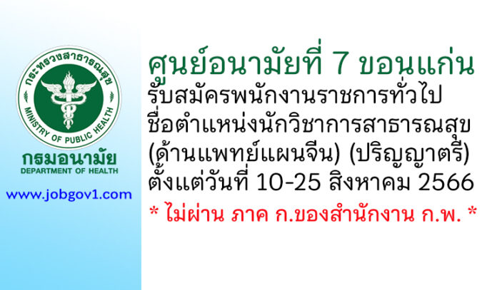 ศูนย์อนามัยที่ 7 ขอนแก่น รับสมัครพนักงานราชการทั่วไป ตำแหน่งนักวิชาการสาธารณสุข (ด้านแพทย์แผนจีน) ตั้งแต่วันที่ 10-25 สิงหาคม 2566