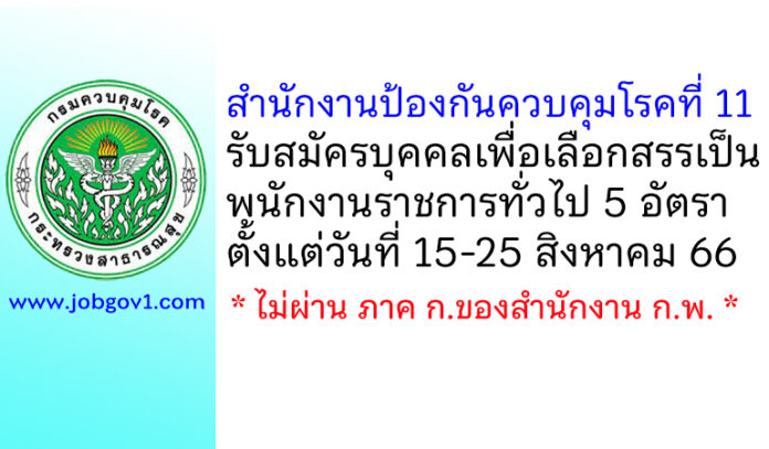 สำนักงานป้องกันควบคุมโรคที่ 11 รับสมัครบุคคลเพื่อเลือกสรรเป็นพนักงานราชการทั่วไป 5 อัตรา ตั้งแต่วันที่ 15-25 สิงหาคม 2566