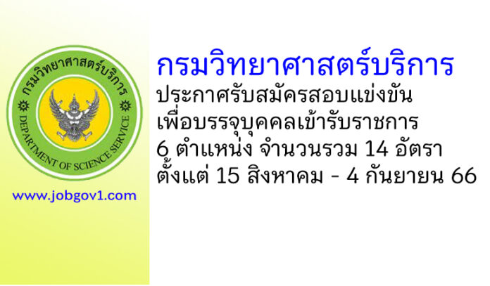 กรมวิทยาศาสตร์บริการ รับสมัครสอบแข่งขันเพื่อบรรจุบุคคลเข้ารับราชการ 14 อัตรา