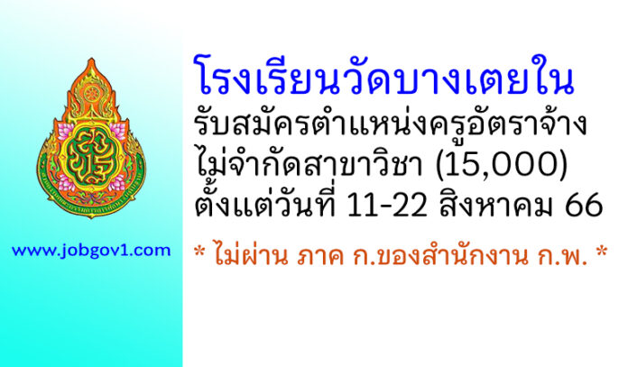 โรงเรียนวัดบางเตยใน รับสมัครครูอัตราจ้าง ไม่จำกัดสาขาวิชา ตั้งแต่วันที่ 11-22 สิงหาคม 2566