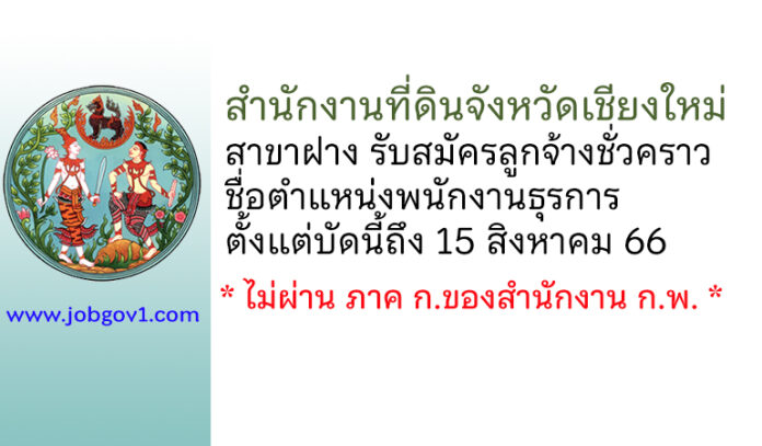 สำนักงานที่ดินจังหวัดเชียงใหม่ สาขาฝาง รับสมัครลูกจ้างชั่วคราว ตำแหน่งพนักงานธุรการ ตั้งแต่บัดนี้ถึง 15 สิงหาคม 2566