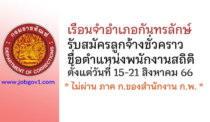 เรือนจำอำเภอกันทรลักษ์ รับสมัครลูกจ้างชั่วคราว ตำแหน่งพนักงานสถิติ ตั้งแต่วันที่ 15-21 สิงหาคม 2566