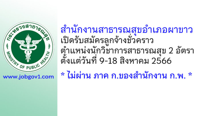 สำนักงานสาธารณสุขอำเภอผาขาว รับสมัครลูกจ้างชั่วคราว ตำแหน่งนักวิชาการสาธารณสุข 2 อัตรา ตั้งแต่วันที่ 9-18 สิงหาคม 2566