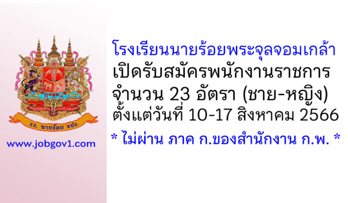 โรงเรียนนายร้อยพระจุลจอมเกล้า รับสมัครพนักงานราชการ 23 อัตรา (ชาย-หญิง) ตั้งแต่วันที่ 10-17 สิงหาคม 2566