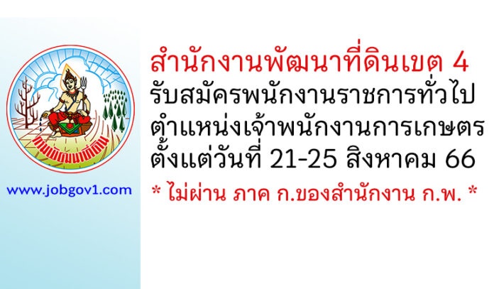สำนักงานพัฒนาที่ดินเขต 4 รับสมัครพนักงานราชการทั่วไป ตำแหน่งเจ้าพนักงานการเกษตร ตั้งแต่วันที่ 21-25 สิงหาคม 2566