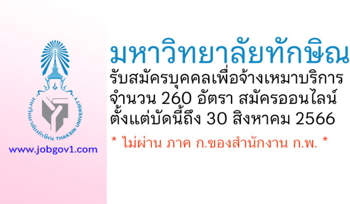 มหาวิทยาลัยทักษิณ รับสมัครบุคคลเพื่อจ้างเหมาบริการ 260 อัตรา ตั้งแต่บัดนี้ถึง 30 สิงหาคม 2566