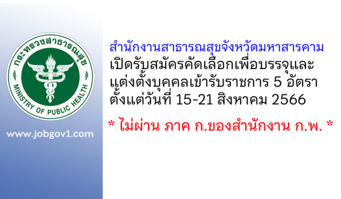 สำนักงานสาธารณสุขจังหวัดมหาสารคาม รับสมัครคัดเลือกเพื่อบรรจุและแต่งตั้งบุคคลเข้ารับราชการ 5 อัตรา ตั้งแต่วันที่ 15-21 สิงหาคม 2566