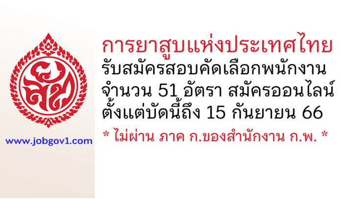 การยาสูบแห่งประเทศไทย รับสมัครสอบคัดเลือกเป็นพนักงาน 51 อัตรา ตั้งแต่บัดนี้ถึง 15 กันยายน 2566