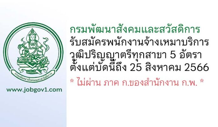 กรมพัฒนาสังคมและสวัสดิการ รับสมัครพนักงานจ้างเหมาบริการ 5 อัตรา ตั้งแต่บัดนี้ถึง 25 สิงหาคม 2566