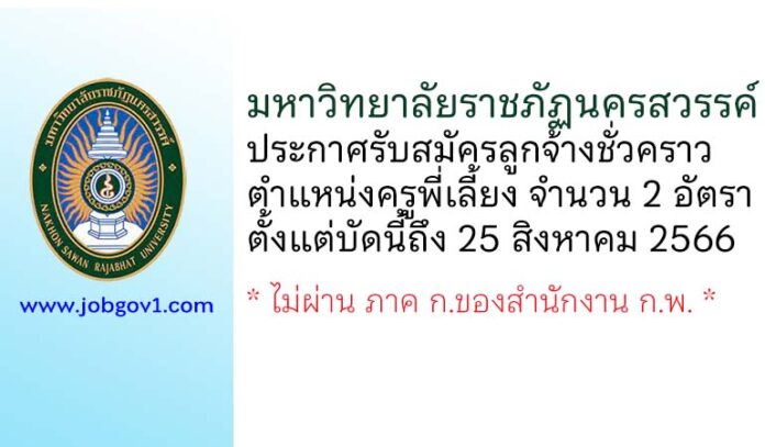 มหาวิทยาลัยราชภัฏนครสวรรค์ รับสมัครลูกจ้างชั่วคราว ตำแหน่งครูพี่เลี้ยง 2 อัตรา ตั้งแต่บัดนี้ถึง 25 สิงหาคม 2566