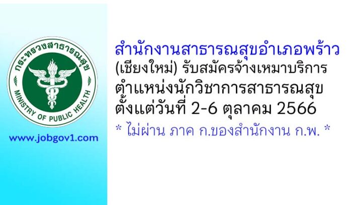 สำนักงานสาธารณสุขอำเภอพร้าว รับสมัครจ้างเหมาบริการ ตำแหน่งนักวิชาการสาธารณสุข ตั้งแต่วันที่ 2-6 ตุลาคม 2566