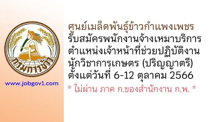 ศูนย์เมล็ดพันธุ์ข้าวกำแพงเพชร รับสมัครพนักงานจ้างเหมาบริการ ตำแหน่งเจ้าหน้าที่ช่วยปฏิบัติงาน นักวิชาการเกษตร ตั้งแต่วันที่ 6-12 ตุลาคม 2566