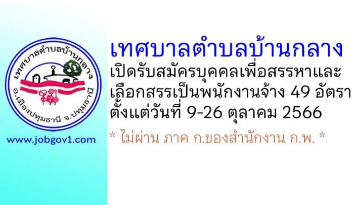เทศบาลตำบลบ้านกลาง รับสมัครบุคคลเพื่อสรรหาและเลือกสรรเป็นพนักงานจ้าง 49 อัตรา ตั้งแต่วันที่ 9-26 ตุลาคม 2566