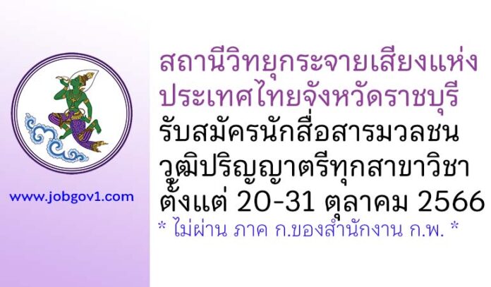 สถานีวิทยุกระจายเสียงแห่งประเทศไทยจังหวัดราชบุรี รับสมัครลูกจ้างชั่วคราว ตำแหน่งนักสื่อสารมวลชน ตั้งแต่วันที่ 20-31 ตุลาคม 2566