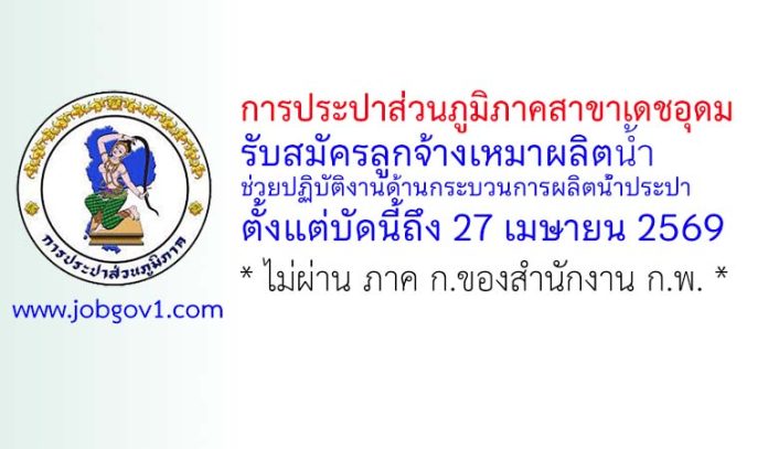 การประปาส่วนภูมิภาคสาขาเดชอุดม รับสมัครลูกจ้างเหมาผลิตน้ำ ช่วยปฏิบัติงานด้านกระบวนการผลิตน้ำประปา ตั้งแต่บัดนี้ถึง 27 เมษายน 2569