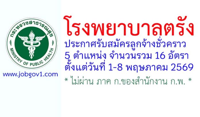โรงพยาบาลตรัง รับสมัครลูกจ้างชั่วคราว 16 อัตรา ตั้งแต่วันที่ 1-8 พฤษภาคม 2569