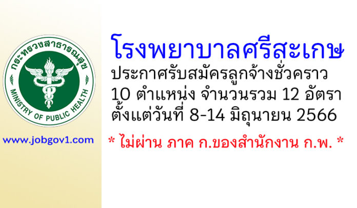 โรงพยาบาลศรีสะเกษ รับสมัครลูกจ้างชั่วคราว 12 อัตรา ตั้งแต่วันที่ 8-14 มิถุนายน 2566