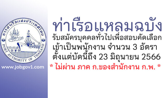 ท่าเรือแหลมฉบัง รับสมัครบุคคลทั่วไปเพื่อสอบคัดเลือกเข้าเป็นพนักงาน 3 อัตรา ตั้งแต่บัดนี้ถึง 23 มิถุนายน 2566