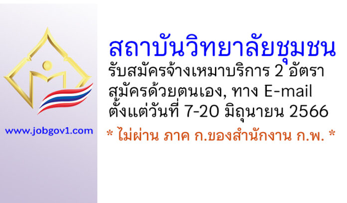 สถาบันวิทยาลัยชุมชน รับสมัครบุคคลเพื่อจ้างเหมาบริการ 2 อัตรา ตั้งแต่วันที่ 7-20 มิถุนายน 2566