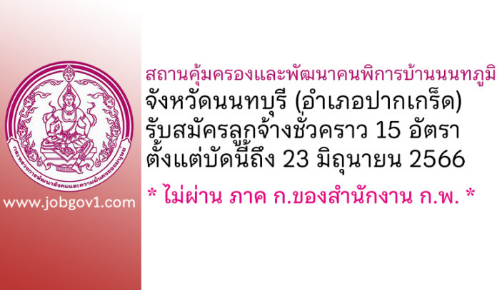 สถานคุ้มครองและพัฒนาคนพิการบ้านนนทภูมิ จังหวัดนนทบุรี รับสมัครลูกจ้างชั่วคราว 15 อัตรา ตั้งแต่บัดนี้ถึง 23 มิถุนายน 2566