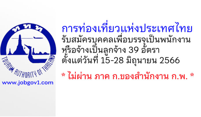 การท่องเที่ยวแห่งประเทศไทย รับสมัครบุคคลเพื่อบรรจุเป็นพนักงานหรือจ้างเป็นลูกจ้าง 39 อัตรา ตั้งแต่วันที่ 15-28 มิถุนายน 2566