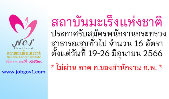 สถาบันมะเร็งแห่งชาติ รับสมัครพนักงานกระทรวงสาธารณสุขทั่วไป 16 อัตรา ตั้งแต่วันที่ 19-26 มิถุนายน 2566