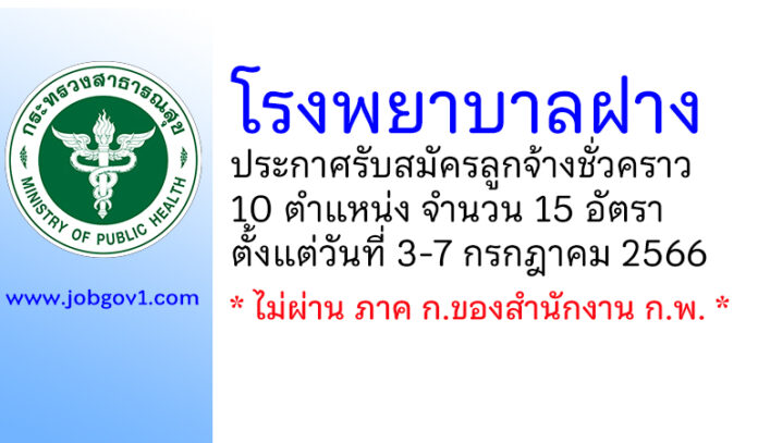 โรงพยาบาลฝาง รับสมัครลูกจ้างชั่วคราว 15 อัตรา ตั้งแต่วันที่ 3-7 กรกฎาคม 2566