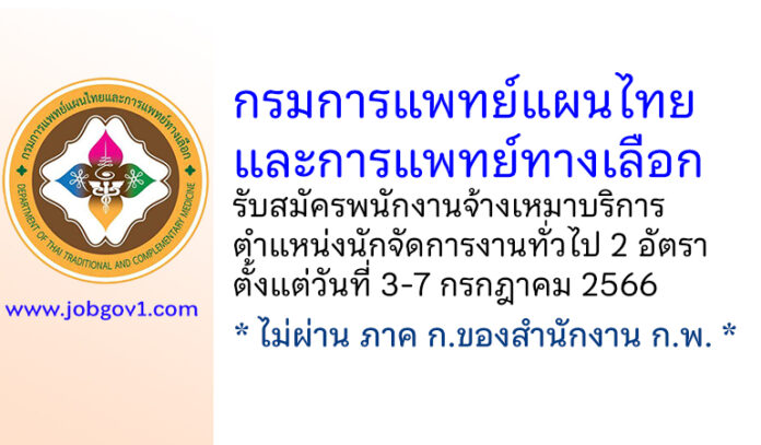 กรมการแพทย์แผนไทยและการแพทย์ทางเลือก รับสมัครพนักงานจ้างเหมาบริการ ตำแหน่งนักจัดการงานทั่วไป 2 อัตรา ตั้งแต่วันที่ 3-7 กรกฎาคม 2566
