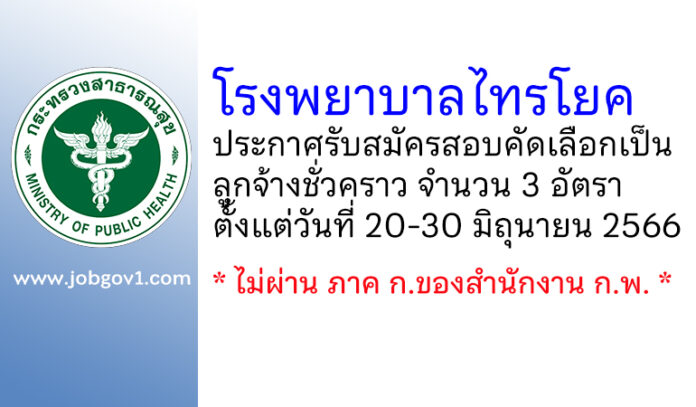 โรงพยาบาลไทรโยค รับสมัครสอบคัดเลือกเป็นลูกจ้างชั่วคราว 3 อัตรา ตั้งแต่วันที่ 20-30 มิถุนายน 2566