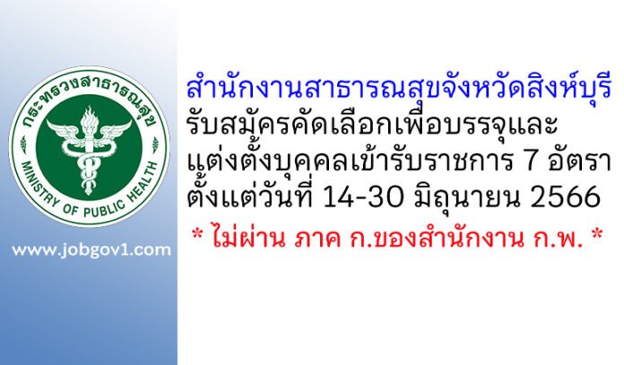 สำนักงานสาธารณสุขจังหวัดสิงห์บุรี รับสมัครคัดเลือกเพื่อบรรจุและแต่งตั้งบุคคลเข้ารับราชการ 7 อัตรา ตั้งแต่วันที่ 14-30 มิถุนายน 2566
