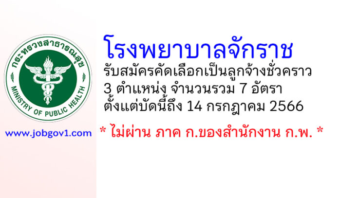 โรงพยาบาลจักราช รับสมัครคัดเลือกเป็นลูกจ้างชั่วคราว 7 อัตรา ตั้งแต่บัดนี้ถึง 14 กรกฎาคม 2566