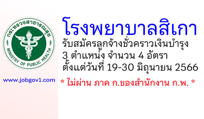 โรงพยาบาลสิเกา รับสมัครลูกจ้างชั่วคราวเงินบำรุง 4 อัตรา ตั้งแต่วันที่ 19-30 มิถุนายน 2566