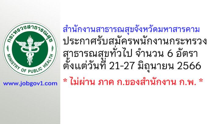 สำนักงานสาธารณสุขจังหวัดมหาสารคาม รับสมัครพนักงานกระทรวงสาธารณสุขทั่วไป 6 อัตรา ตั้งแต่วันที่ 21-27 มิถุนายน 2566