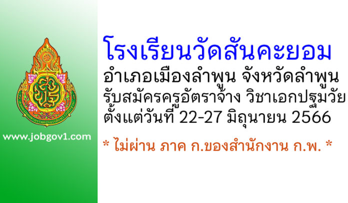 ผู้ประสงค์จะสมัครเข้ารับการเลือกสรรสามารถขอรับใบสมัครและยื่นใบสมัครด้วยตนเองได้ที่โรงเรียนวัดสันคะยอม ตำบลมะเขือแจ้ อำเภอเมือง จังหวัดลำพูน ระหว่างวันที่ 22 เดือนมิถุนายน พ.ศ. 2566 ถึงวันที่ 27 เดือนมิถุนายน พ.ศ. 2566 เวลา 08.30 น. – 16.30 น. ในเวลาราชการ