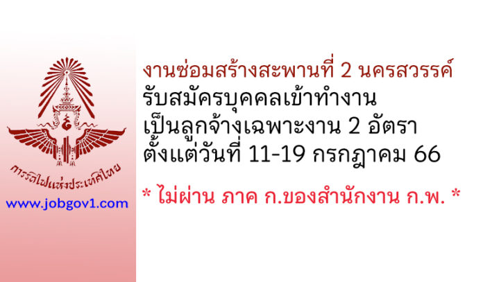 งานซ่อมสร้างสะพานที่ 2 นครสวรรค์ รับสมัครบุคคลเข้าทำงานเป็นลูกจ้างเฉพาะงาน 2 อัตรา ตั้งแต่วันที่ 11-19 กรกฎาคม 2566